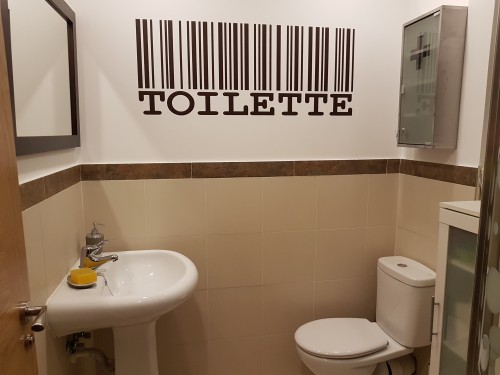 Adhesivo de código de barras para la decoración de aseos. Un elegante diseño para colocar en tu ambiente y ofrecerle un toque diferente y distinguido.