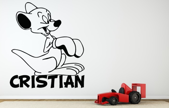 Canguro adhesivo con nombre para personalizar ambientes infantiles. Diseño de un divertido y simpático canguro que encantará a los más pequeños de la casa.