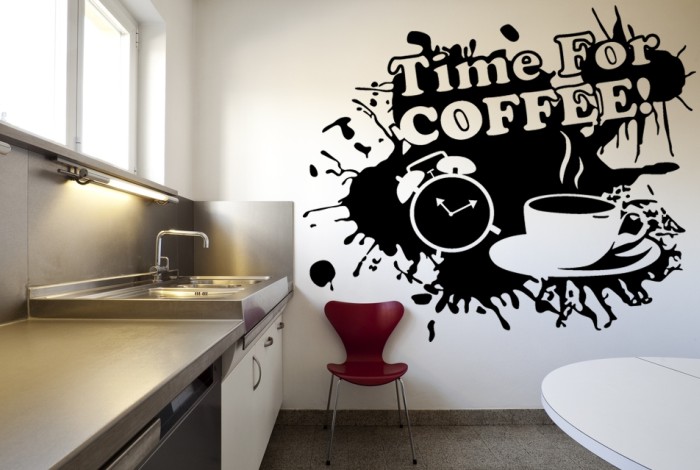 Vinilo adhesivo para la cocina. Elegante y original diseño americano representando la hora del café. Una composición divertida que dará vida a tu cocina.