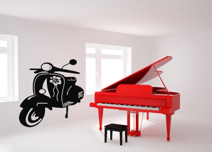 Vinilo decorativo moto Vespa clásica. Un precioso diseño destinado a los amantes de las Vespas. Consigue este original dibujo y crea tu propio espacio.